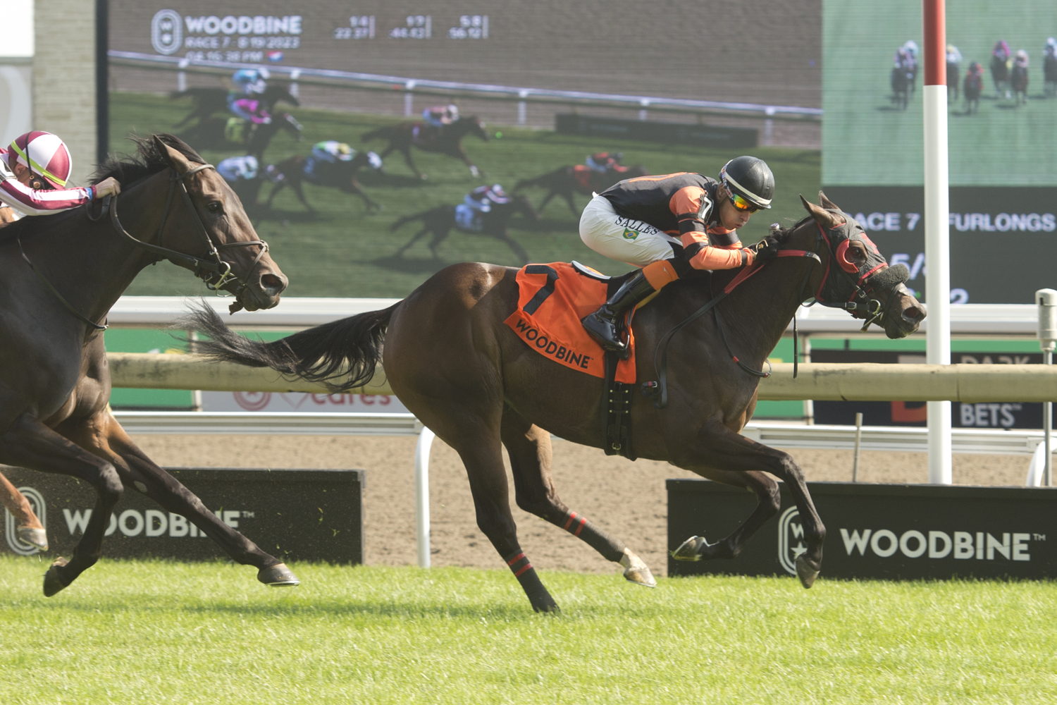 TORONTO, August 19, 2023 – Canadiansweetheart, at 36-1, rallied impressively to take Saturday’s $125,000 Sweet Briar Too Stakes at Woodbine.