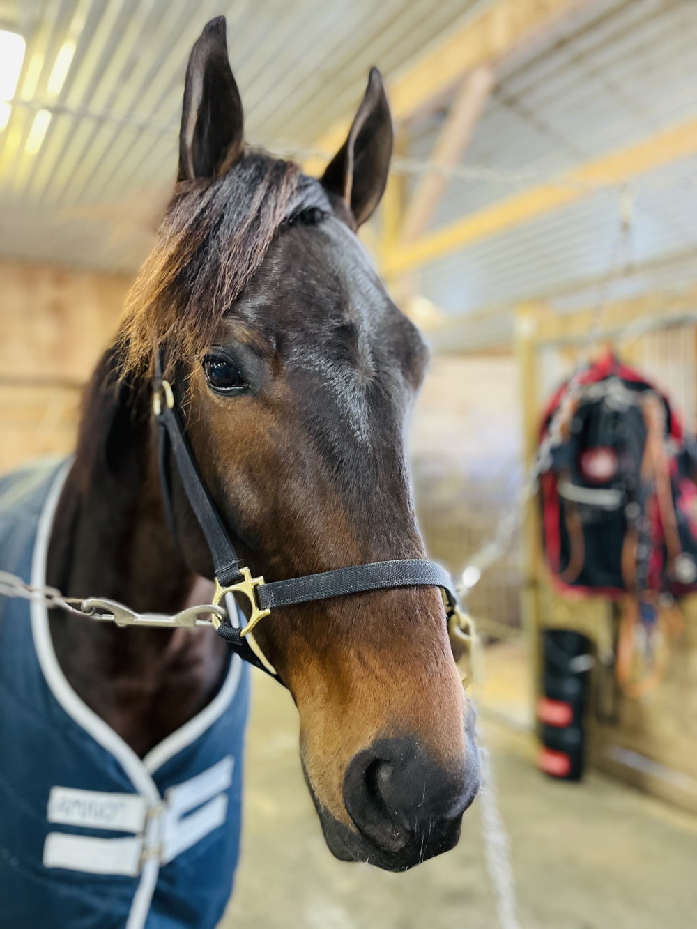 “He's awesome. He's always in a good mood. I mentioned his routine, he likes to stick to that. Every morning, he recognizes my car, and he nickers when the barn door opens. If you keep him happy, he looks after you.