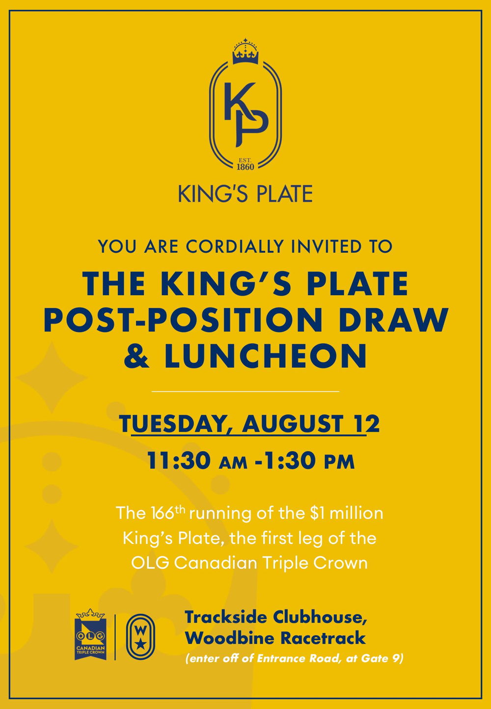 Members of the media are invited to attend The King's Plate Post Position Draw and Luncheon on Tuesday, August 12.