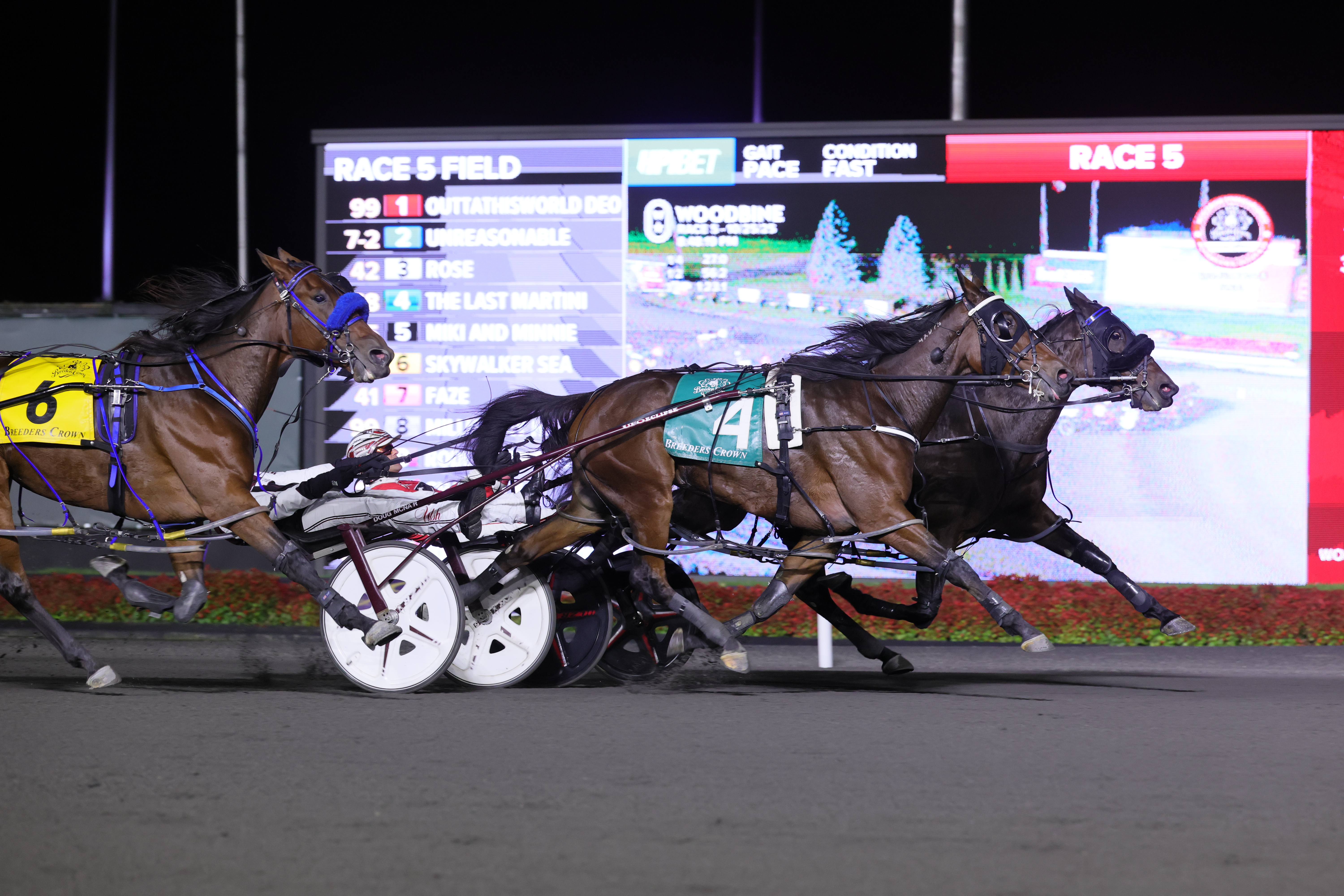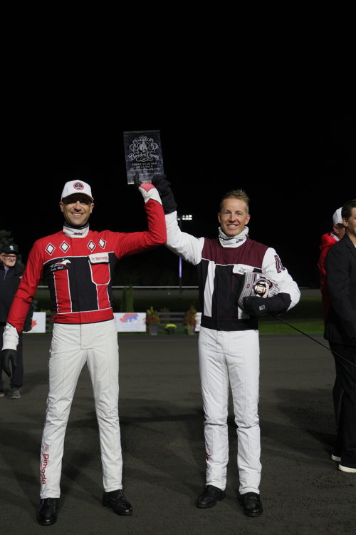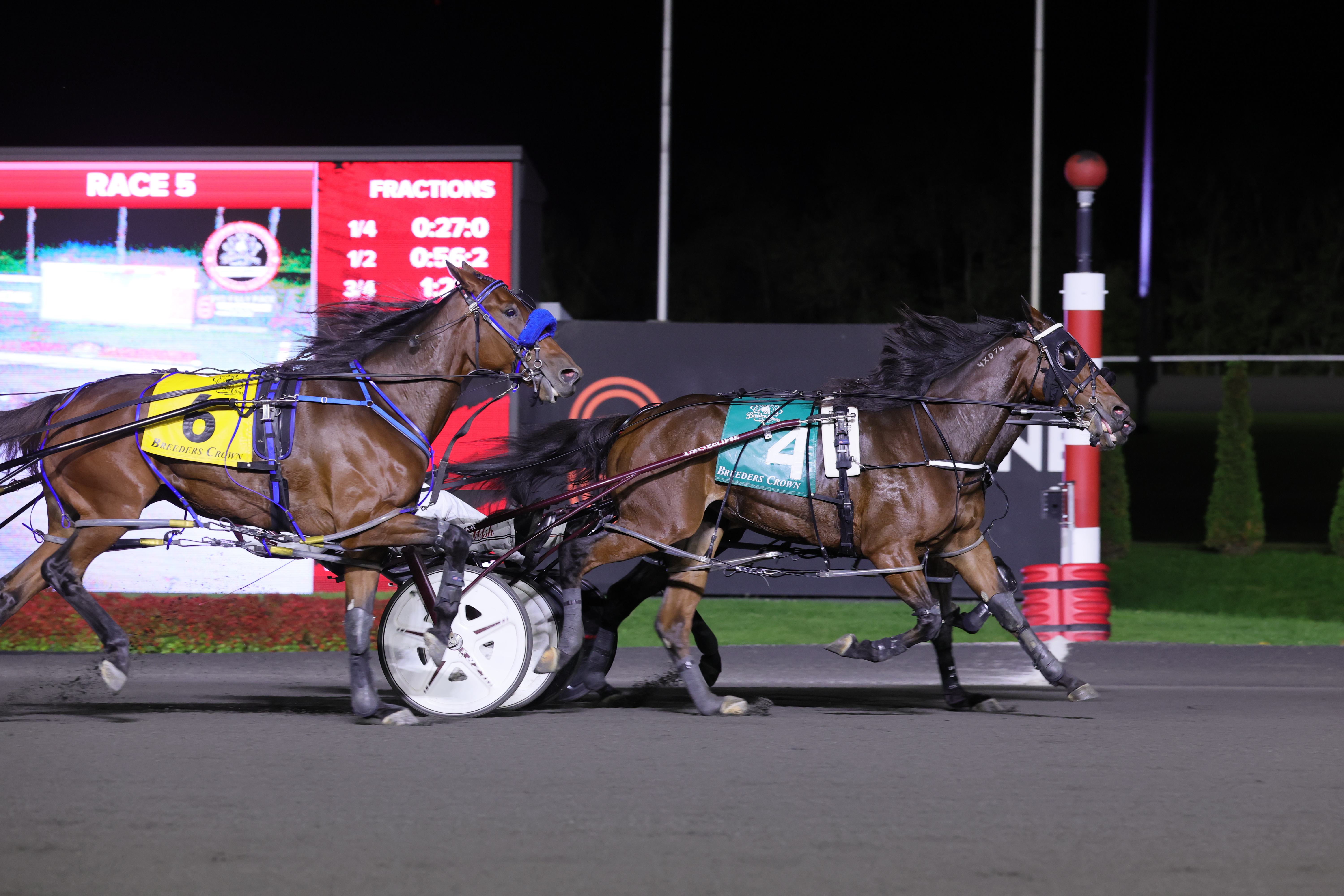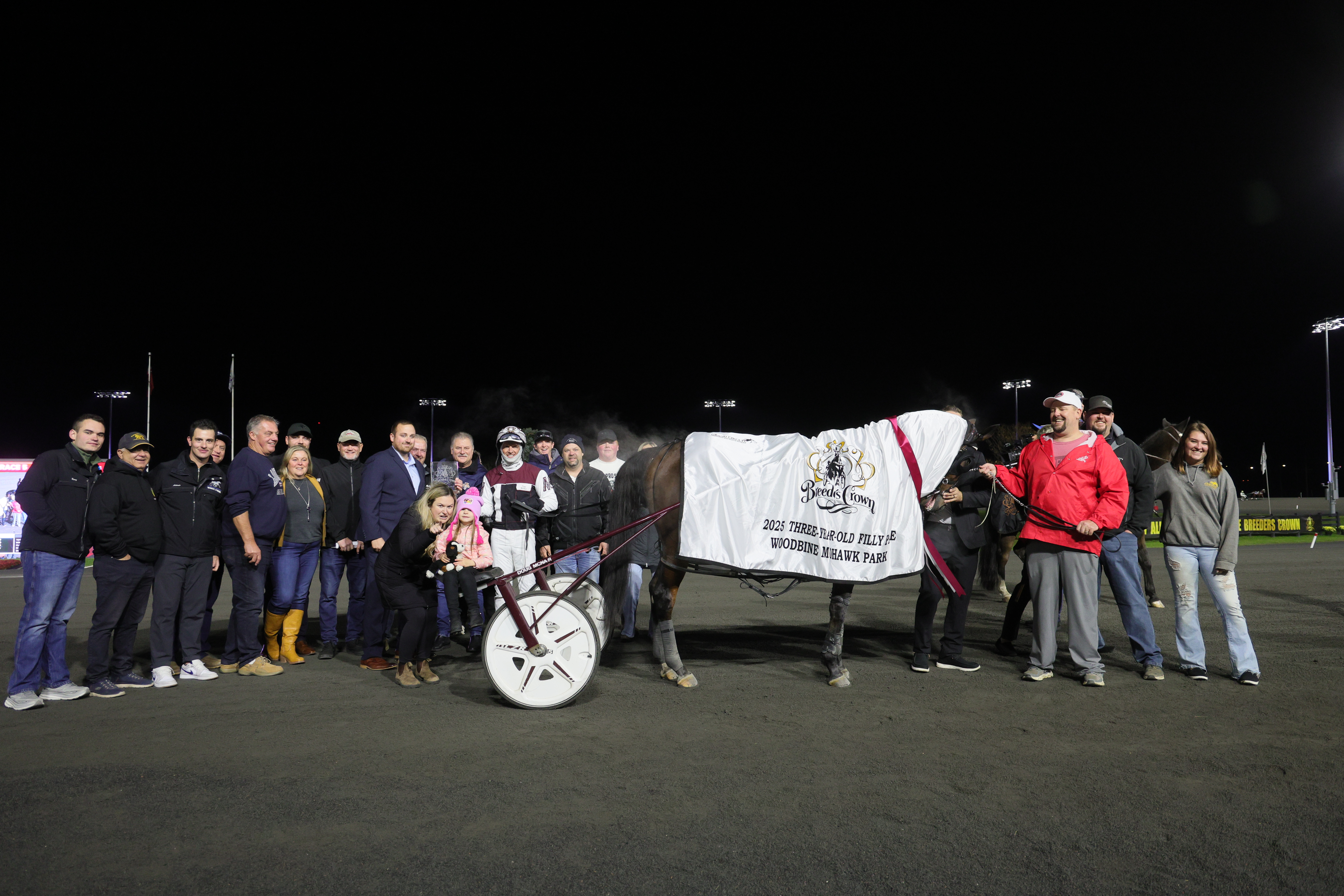 MILTON, October 25, 2025— For just the second time in the 41-year history of the Breeders Crown, a pair of horses hit the finish line in a dead-heat for win. Miki And Minnie and The Last Martini, after finishing one-two in last year’s 2-Year-Old Filly Pace, matched strides crossing the beam in a 1:49.2 mile to tie for the victory in the $822,000 Breeders Crown 3-Year-Old Filly Pace on Saturday night at Woodbine Mohawk Park.