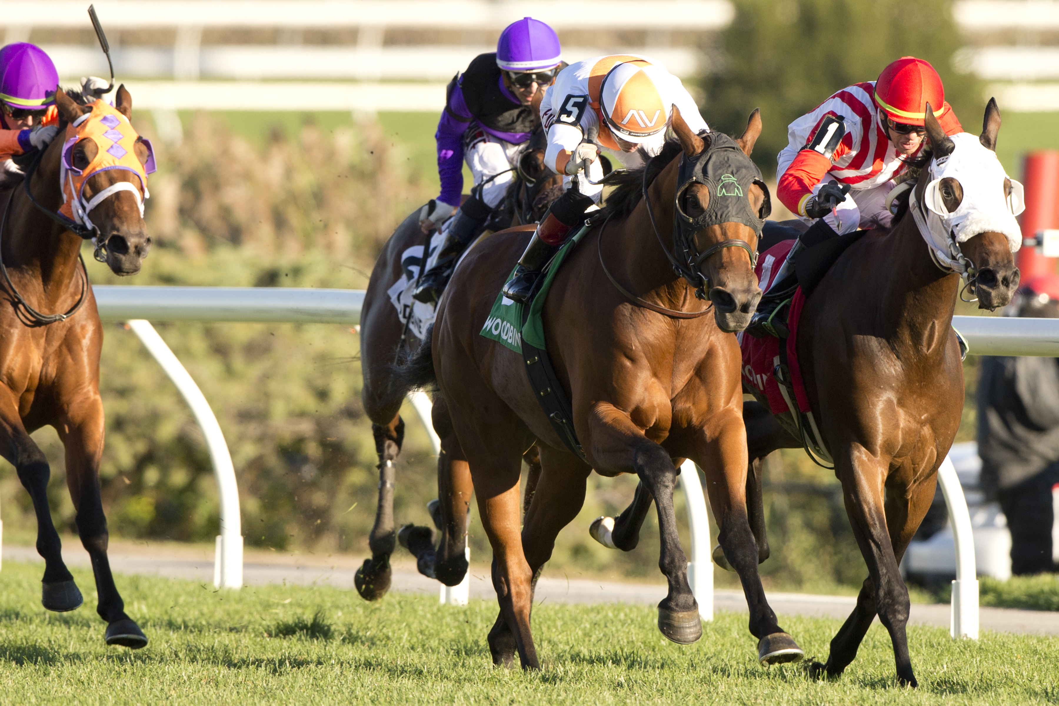 “I knew there was going to be speed in the race and my plan was to break good, not to be too far back and save as much ground as I could,” said Adams, who teamed with Little Teddy to take Saturday’s Eternal Search Stakes, also at 7 ½ panels on the inner turf. “I wanted to get the jump on Awesome Bourbon – that was kind of the plan – and it worked out perfectly.”