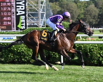 Nations Pride (IRE) impressed in that first North American test, running second in the first leg of the Caesars Turf Triple series that July and built on that performance with a 1 ¾-length triumph in the $1 million Caesars Saratoga Derby (G1T) a month later.