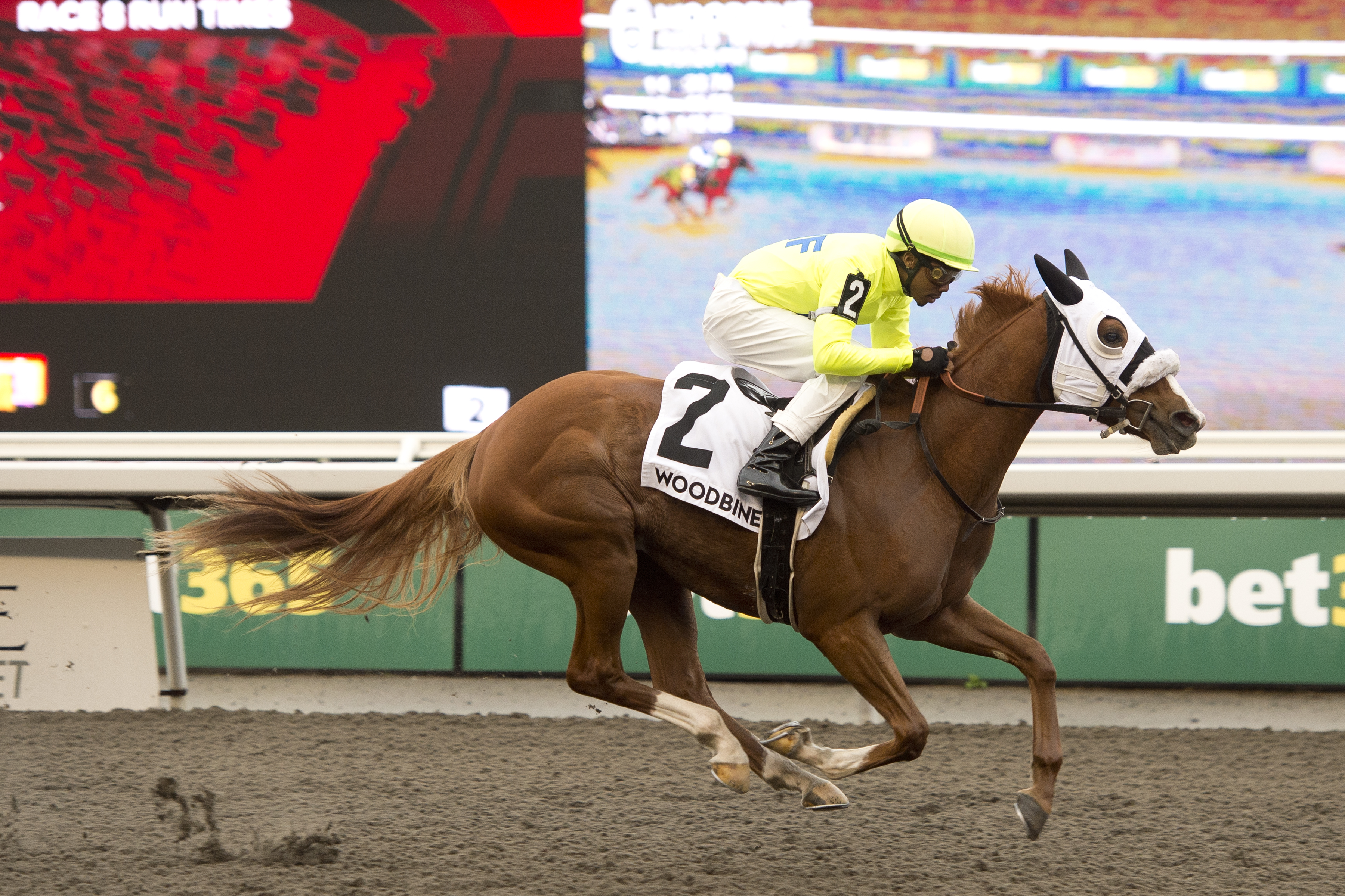 Sent off at 13-1, the chestnut filly was last of eight, 10 lengths off the leader, through the opening quarter in the seven-furlong main track event for Ontario-sired 2-year-old fillies.